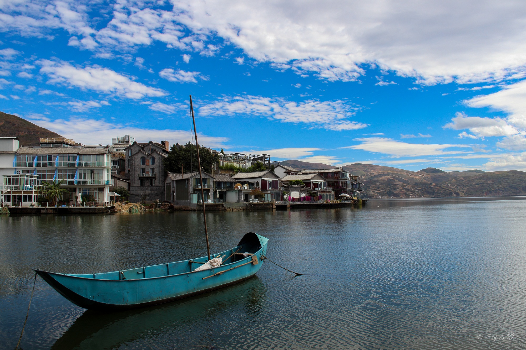 第二张照片,摄于13:51在双廊镇内,本来是一份宁静安逸的感觉,特别喜欢那天空那湖水加上船只的蓝色交相辉映。为了衬托这组照片的主题,倒也可以作为出发去寻找天堂的一个意思,出发前的摸样,正好与第三张呼应。