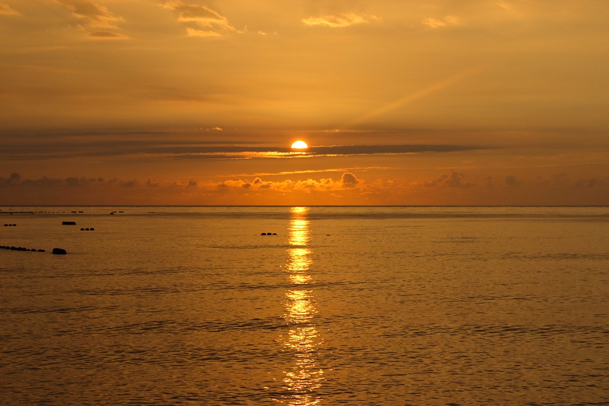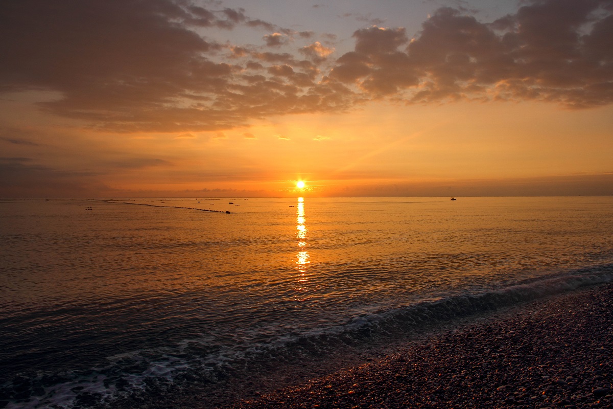 因为第一天的不完美,继续早起二刷七星潭日出,一路上看见西方云层很厚东方没有什么云就预感今天应该顺利,果然到达七星潭东方海平面都没有什么云,而日出已经开始在5点40左右。看见红日从海平面一点点出现,然后又躲进一层云中,然后再次从云中日出,几乎完美,一本满足。只是时间有点仓促拍照准备做的不足,自拍不够。